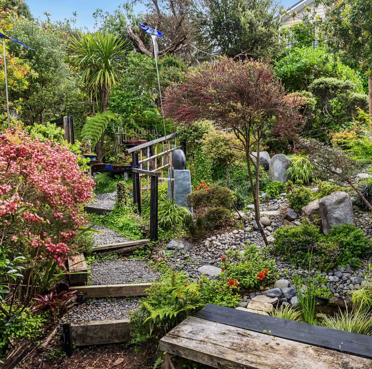 Easy-care gardens and bush - vibrant in colour and a sanctuary of calm and beauty.